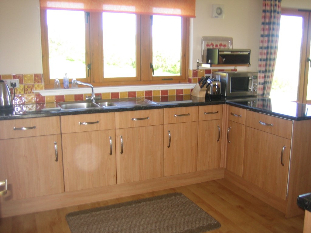 The cottage sleeps 6. It has a comfortable sitting room with an open fire and dual aspect windows with views of the Paps of Jura, there is a spacious dining kitchen, a master bedroom with king size bed and ensuite, a double bedroom and a further twin bedroom. There is a walk in shower in the ensuite and a bath with over bath shower in the family bathroom.